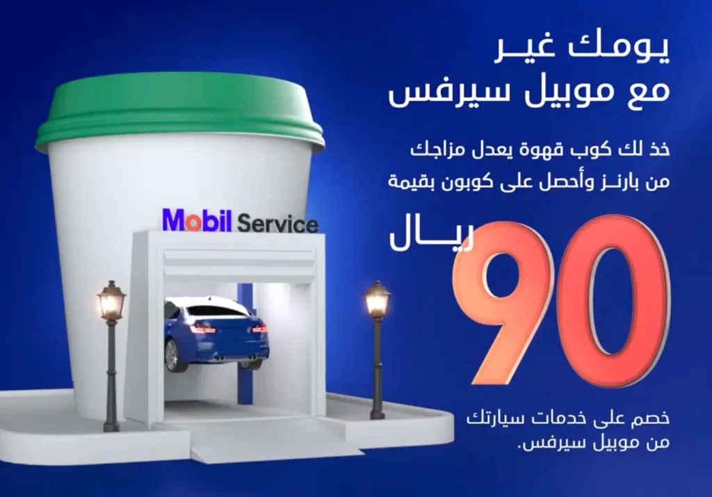 Coffee from Barn’s and premium car care from Mobil Service! Get a 90 SAR discount on Mobil oil changes when you visit us—exclusively for Barns customers! ✨ 🛠️ Drive in today for a smooth ride and a great experience.our peace of mind starts here! Offer valid for a limited time. Terms and conditions apply.